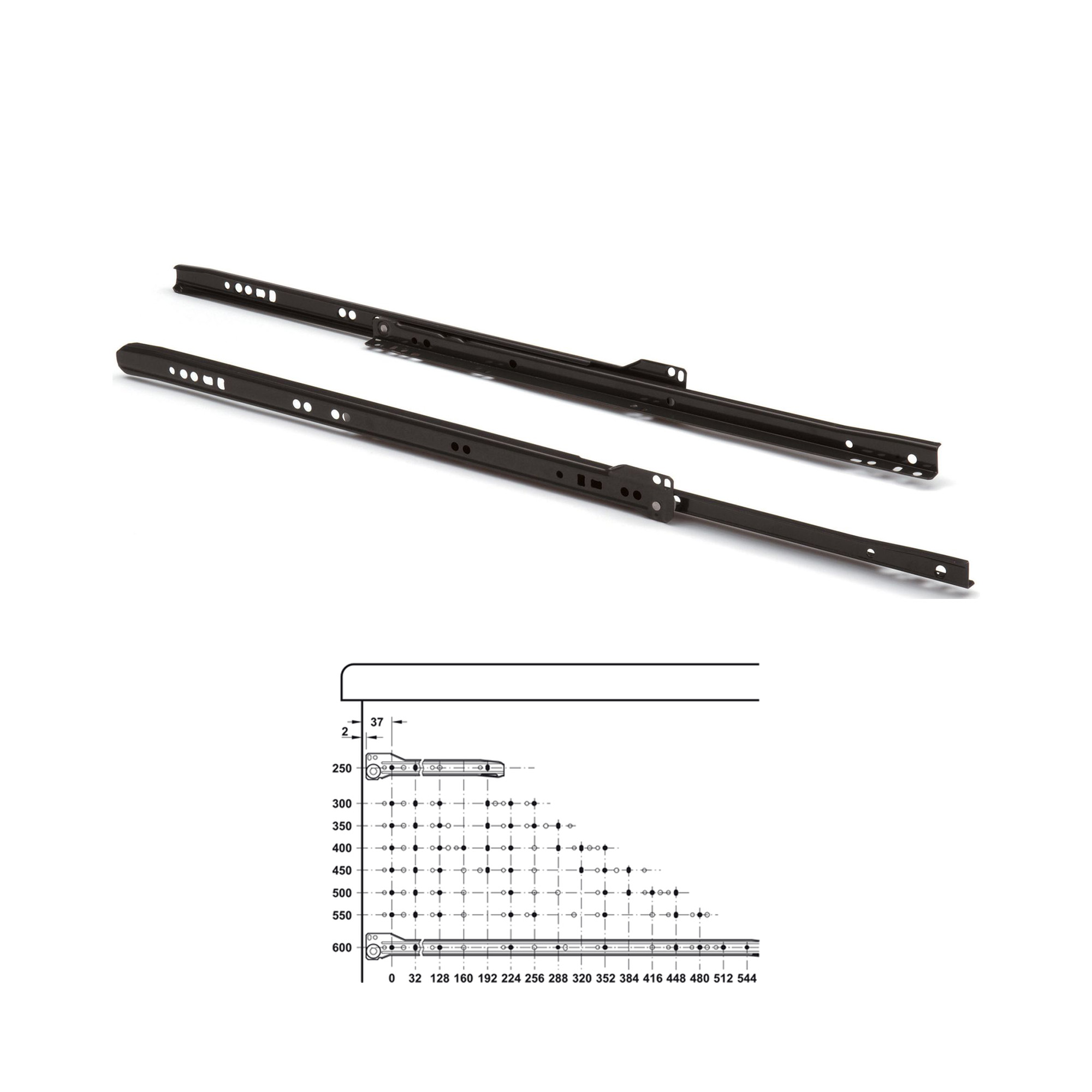 Klasična roler vodilica duljine 400 mm, idealna za standardne ladice. Izrađena je od čelika s crnim premazom, što joj daje estetski izgled i otpornost na koroziju. Vodilica omogućuje glatko klizanje ladice i jednostavnu montažu.